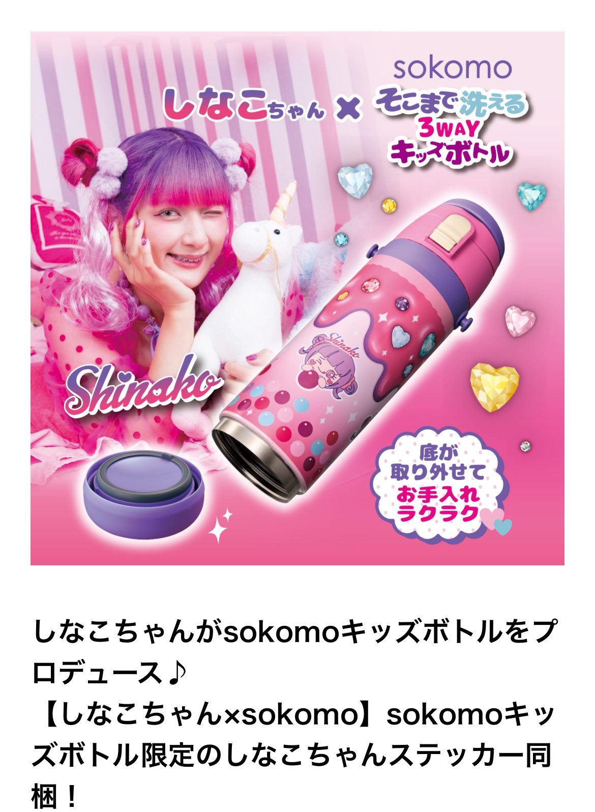 | 商品の特徴 | しなこちゃん × sokomo 3WAYキャンディボトル 600ml 新品】しなこ。原宿系動画クリエイター「しなこ」とのコラボステンレスボトル「しなこ。sokomo そこまで洗える3WAYキッズボトル しなこちゃんコラボ SAKB600SN。しなこちゃんデザインの600mlピンク水筒、3WAY機能付きで便利。- ブランド: 20SHISHA- モデル名: しなこちゃん 3WAY キャンティボトル- 容量: 600ml- 色: ピンク- デザイン: キャラクターデザイン(しなこちゃん)ご覧いただきありがとうございます。。しなこちゃん 水筒 3WAYボトル 600ml - メルカリ。おたんこナース☆様 | ||