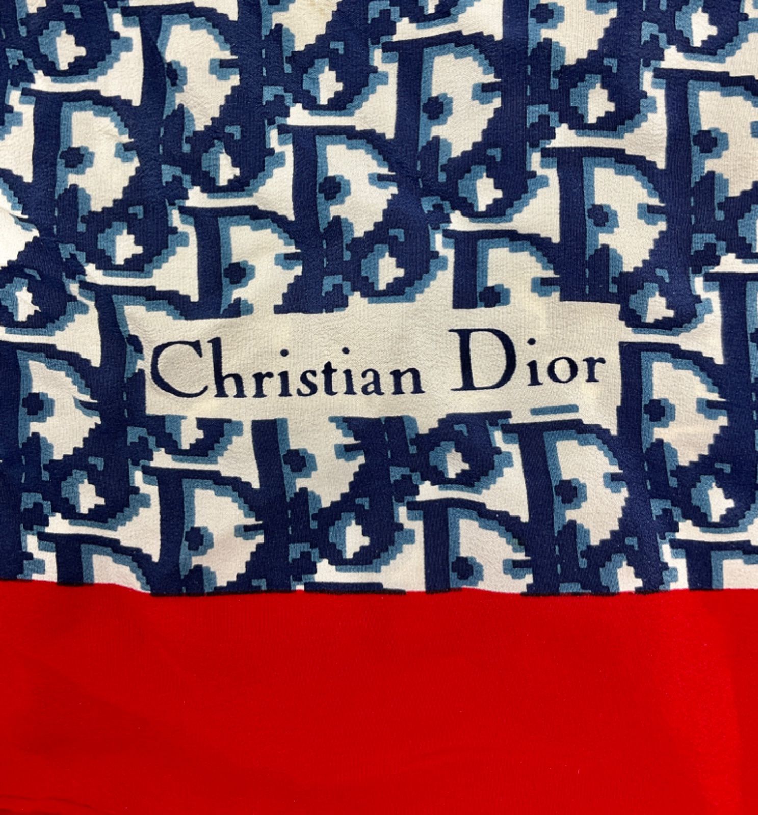 | メーカー | クリスチャンディオール スカーフ 大判 ロゴ シルク トロッター 赤 ネイビー |