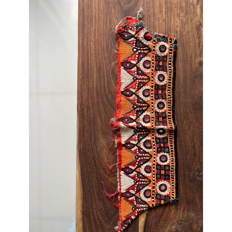【インドのアンティーク刺し子】ヴィンテージ 草木染め 布 赤 刺繍 貝 ステッチ インドのアンティーク刺し子】ヴィンテージ 草木染め 布 赤 刺繍 貝