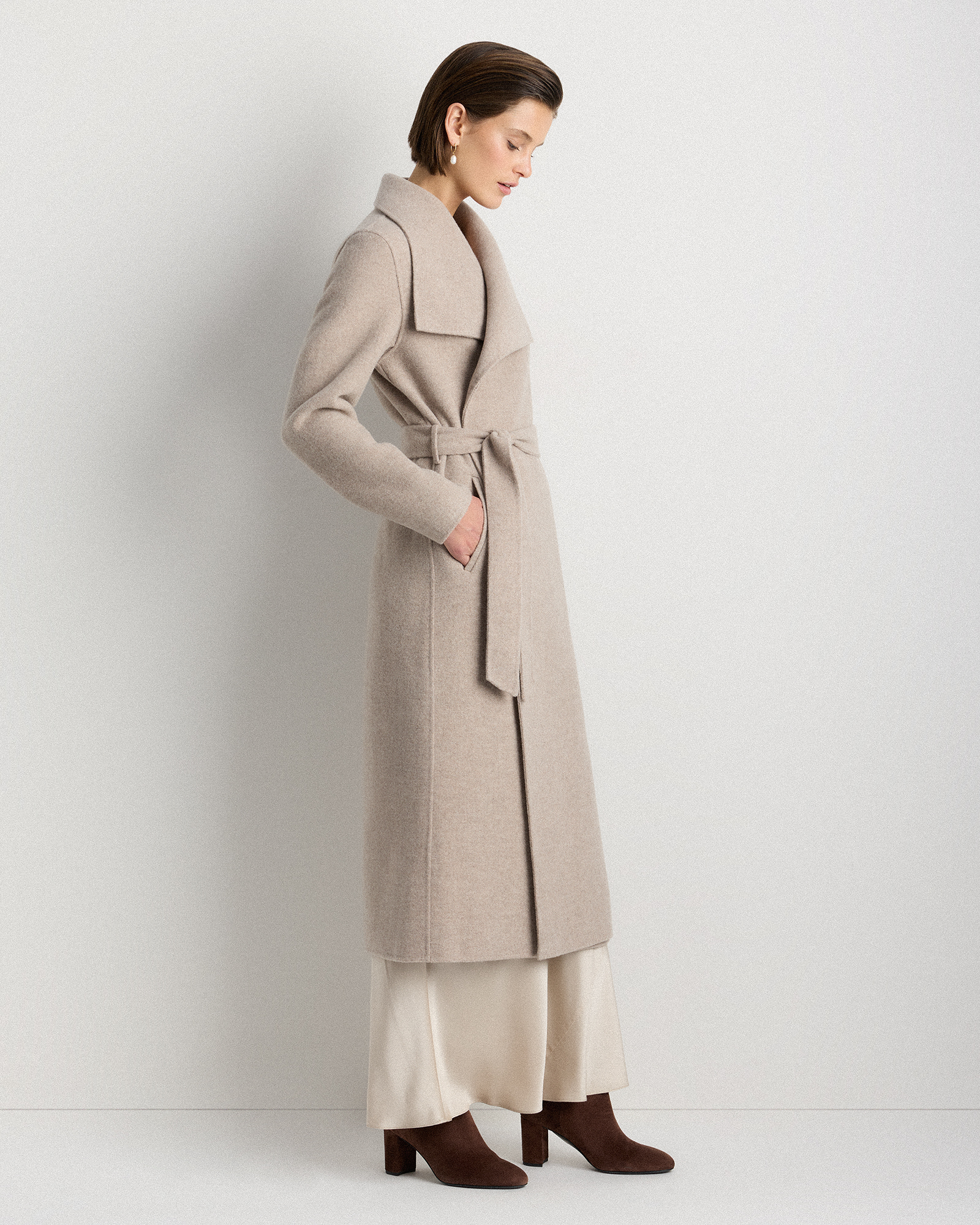 ★3連休限定値下げ★ 90's Soutien Collar Wool Coat Double-Faced Merino Wool Draped Collar Wrap Coat