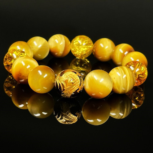 - レディース > アクセサリー > ☆別格高級品!福運招財宝珠⑥!強運!太陽 タイチン ゴールド ルチル ブレス 成功を引き寄せる数珠】18ミリ 金彫四神獣 本水晶 ゴールデンタイガー