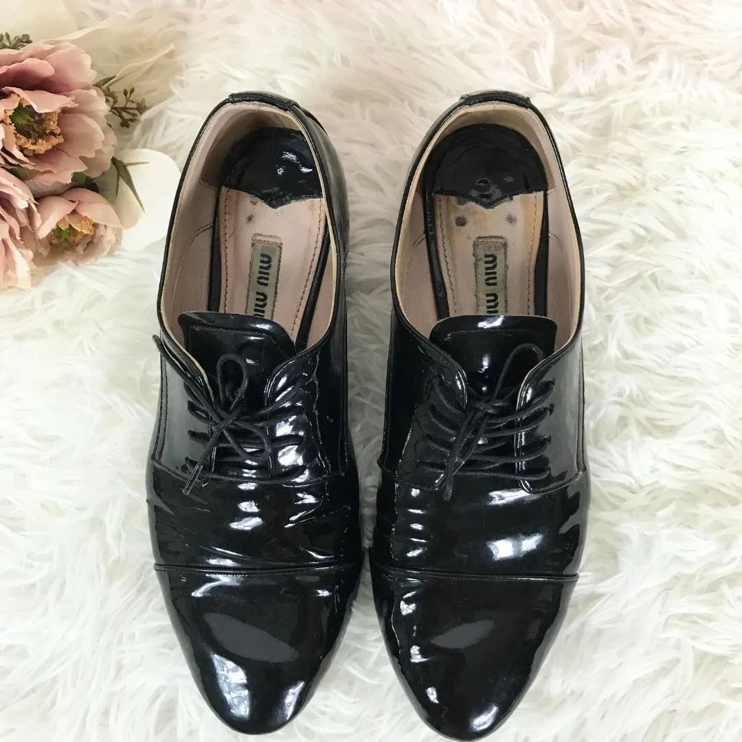 | 商品の特徴 | MIUMIU ミュウミュウサイズ36 エナメル。ミュウミュウ エナメル ドレスシューズ 36 MIU MIU◇パテントレザー。MIU MIU ミュウミュウ fume レースアップ レザー Shoes シューズ。中古・古着通販】MIU MIU (ミュウミュウ) ビジューソールエナメル。ご覧いただきありがとうございます(⋆ᴗ͈ˬᴗ͈)”Miu Miu ミュウミュウレディース ドレスシューズ/ローファー 表記のサイズ:36 (23〜23.5cmくらいのサイズ感です)厚底5.5cm名古屋高島屋正規店舗にて110,000円くらいで購入致しました(*^^*)試着のみです(⋆ᴗ͈ˬᴗ͈)”履くつもりで底を強化する為裏張りしてあります!その他は綺麗だと思いますが、素人検品となりますことご了承頂ける方のみお願い致します(^^)箱はありませんが、布袋などはございますのでお付けいたします(⋆ᴗ͈ˬᴗ͈)”素材···エナメル | ||